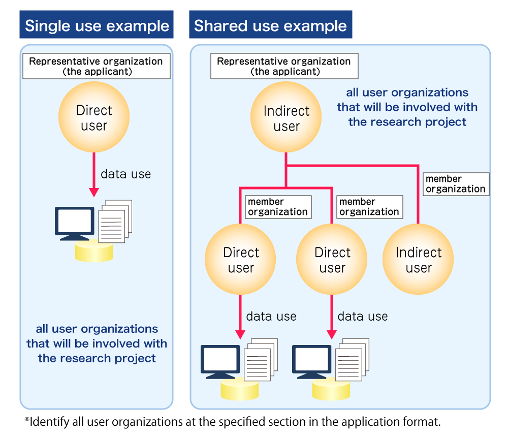 In case the project will be conducted with cooperation between multiple organizations, please designate a representative organization in charge of the project to submit the application. If the intended usage and intended usage period are different within the organizations, please apply separately. |
